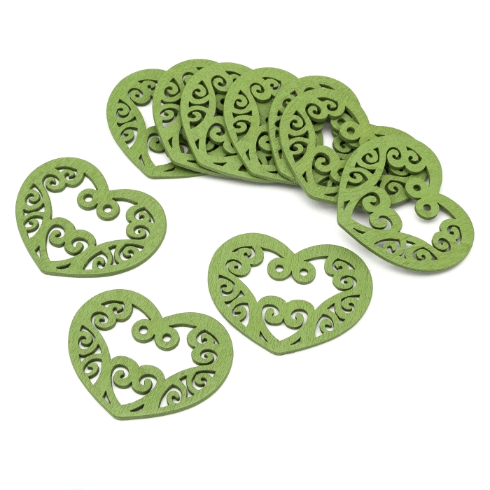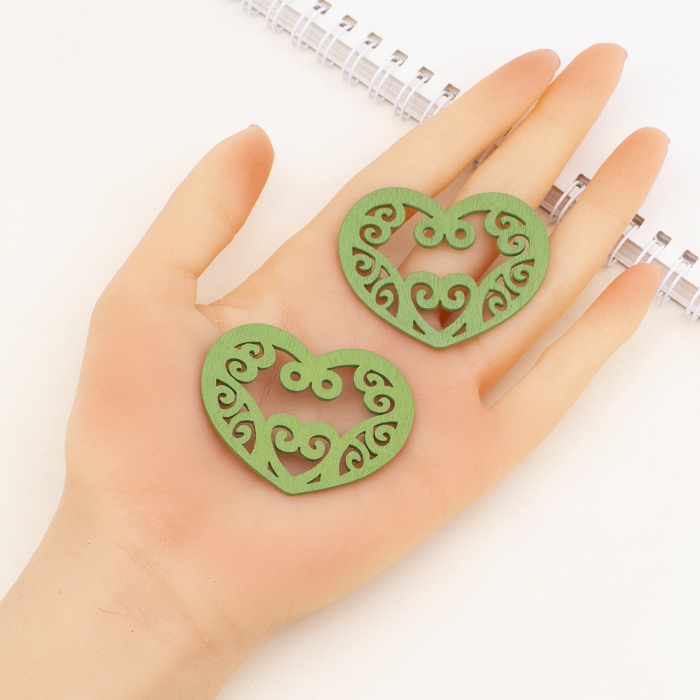 Подвески Деревянные Окрашенные, Сердце, Цвет: Красный, Размер: 52х42х2мм, Отв-тие 2мм, (УТ000003772)