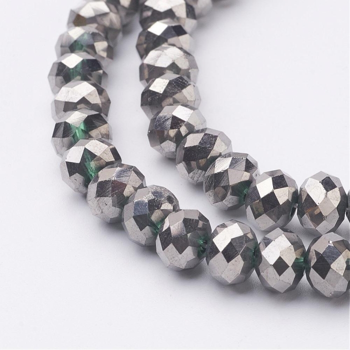 Бусины Стеклянные, Гальваника с Серебристым Покрытием, Граненые, Рондель, Размер: 8х6мм, Отверстие 1мм