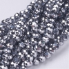 Бусины Стеклянные, Гальваника с Серебристым Покрытием, Граненые, Рондель, Размер: 6х4мм, Отверстие 1мм