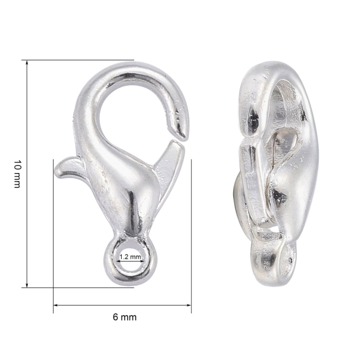 Застежка Карабин-Лобстер из Сплава, Серебро, 10х6мм, Отверстие 1мм, (УТ000005781)