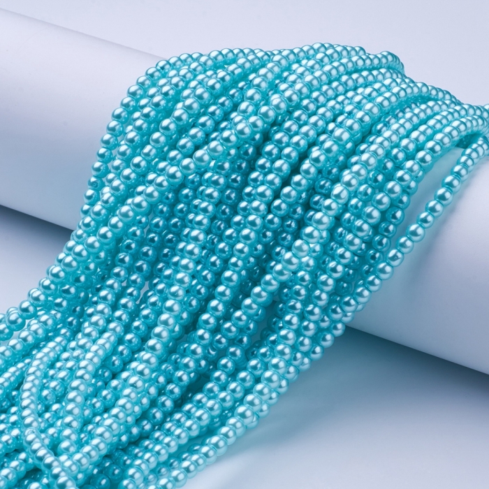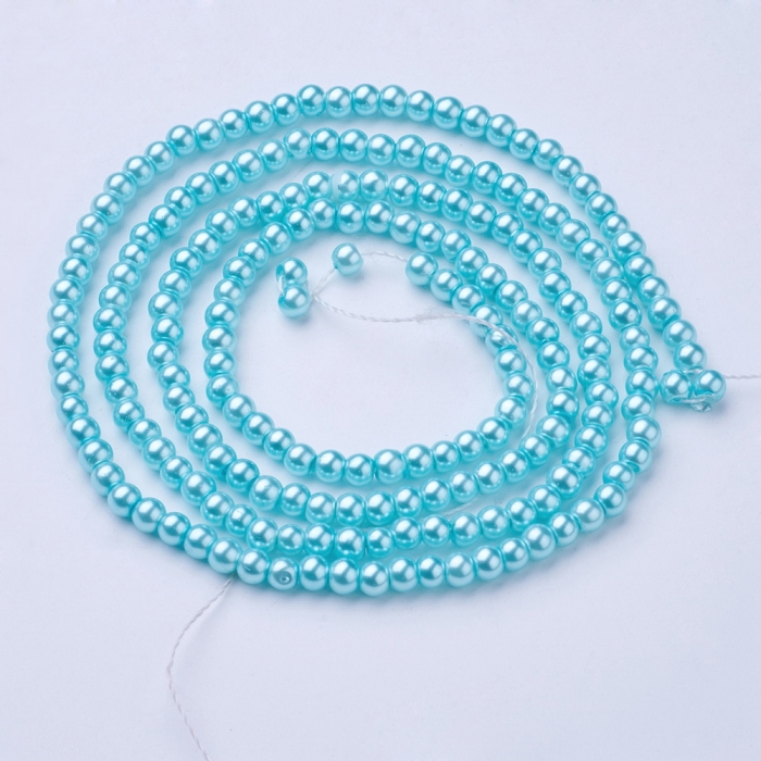 Жемчуг Бусины Стекло 4мм, Глянцевые, Круглые, Слоновая Кость, 4мм, Отв-тие 1мм, около 185шт/75см/нить, (УТ0003268)