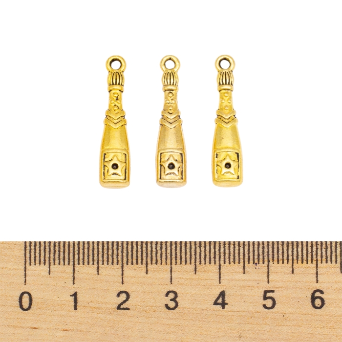 Кулон Бутылка, Металл, Цвет: Античное Золото, Размер: 26.5х6х4мм, Отверстие 2мм, (УТ000006658)