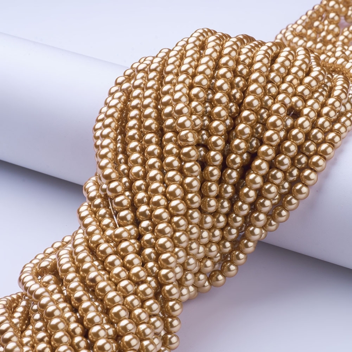 Жемчуг Бусины Стекло 6мм, Глянцевые, Круглые, Цвет: Сиреневый, Диаметр: 6мм, Отв-тие 1мм, около 140шт/84см/нить, (УТ0002602)