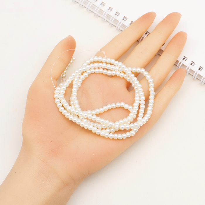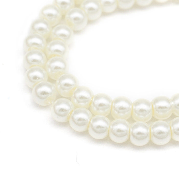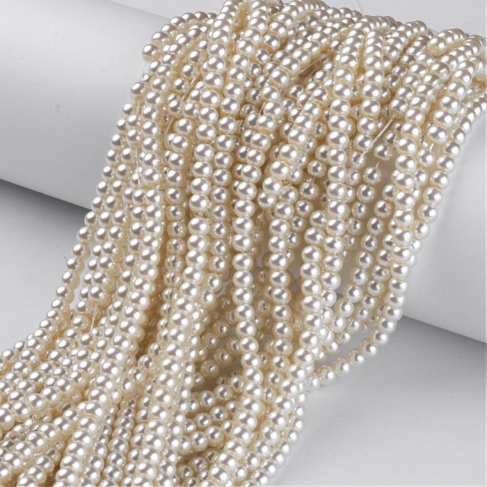 Жемчуг Бусины Стекло 4мм, Глянцевые, Круглые, Слоновая Кость, 4мм, Отв-тие 1мм, около 185шт/75см/нить, (УТ0003268)