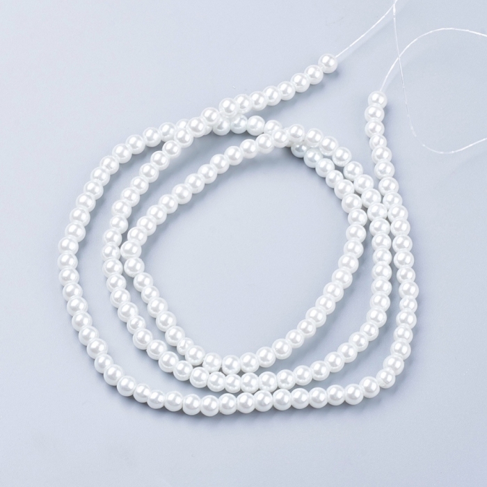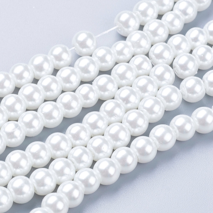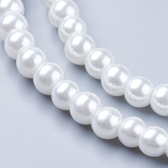 Жемчуг Бусины Стеклянные Глянцевые, Круглые, Белый, 6мм, Отверстие 1мм, около 130шт/75см/нить, (БА000000452)