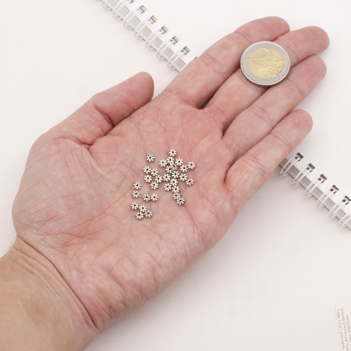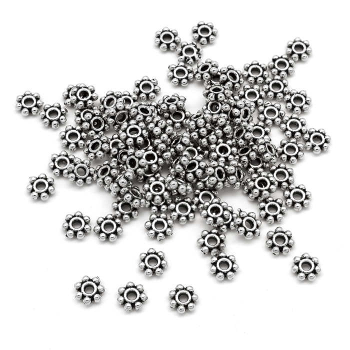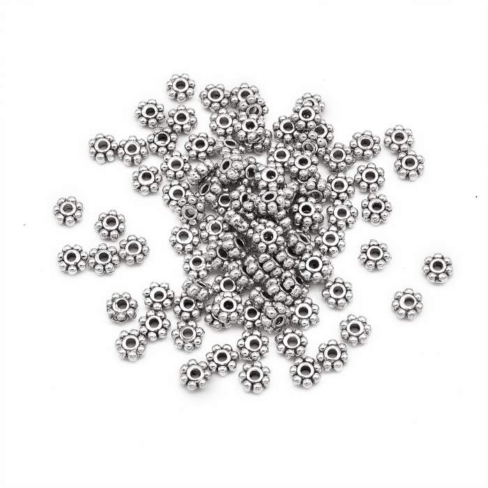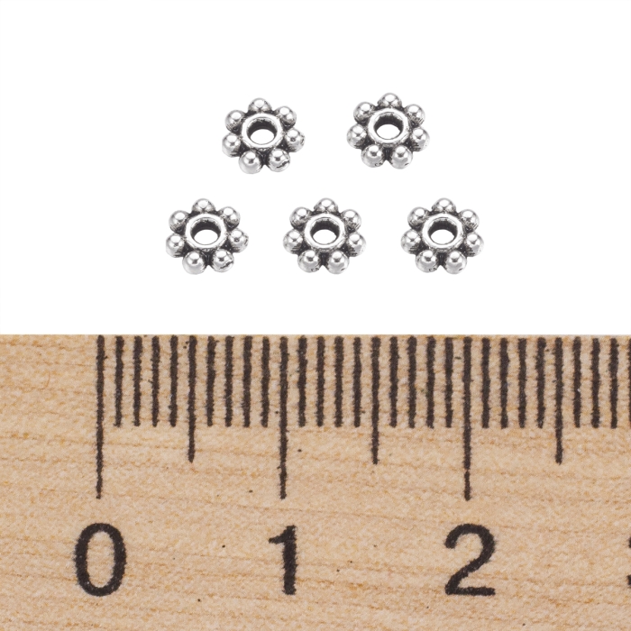 Бусины-Разделители, Бижутерный Сплав, Цветок, Цвет: Античное Серебро, Размер: 4.5х1.5мм, Отверстие 1мм, (УТ0027746)