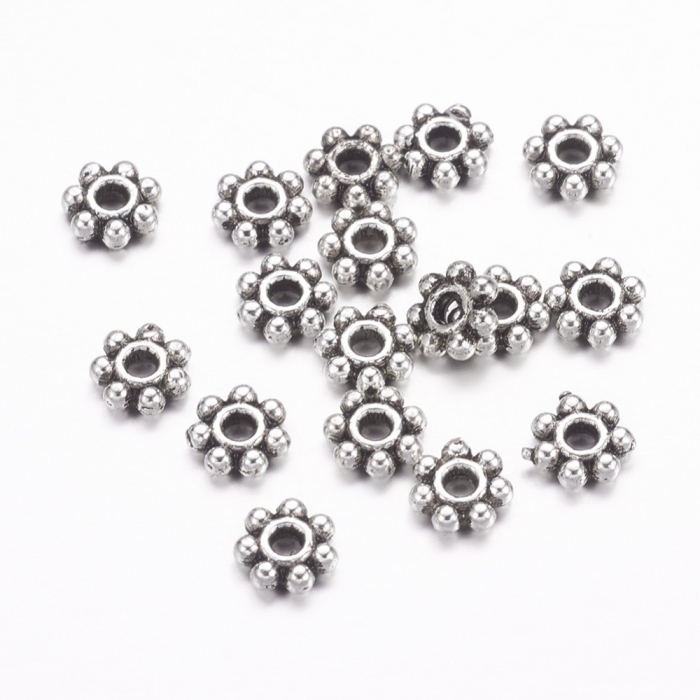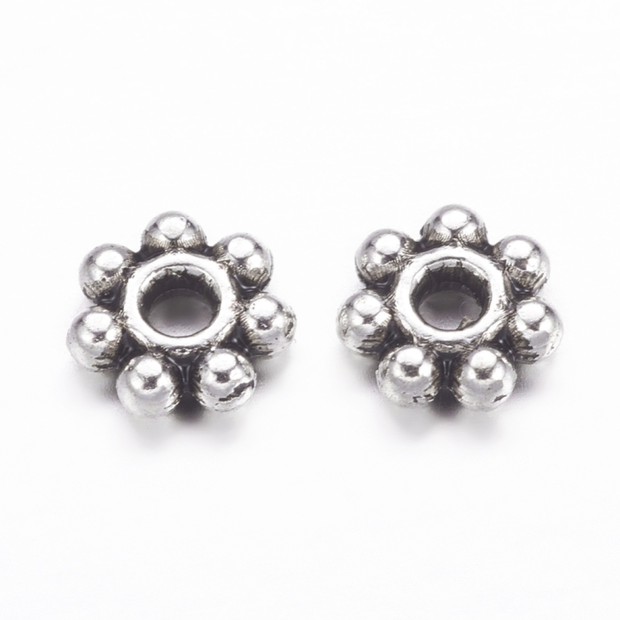 hot Бусины-Разделители, Бижутерный Сплав, Цветок, Цвет: Античное Серебро, Размер: 4.5х1.5мм, Отверстие 1мм, (УТ0027746)