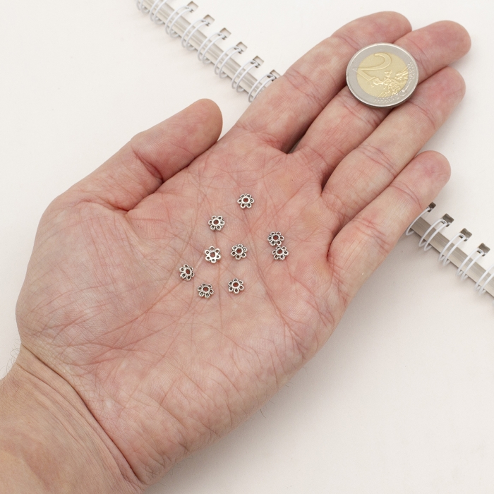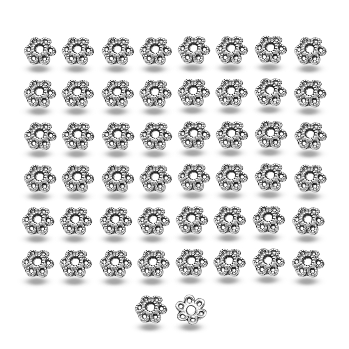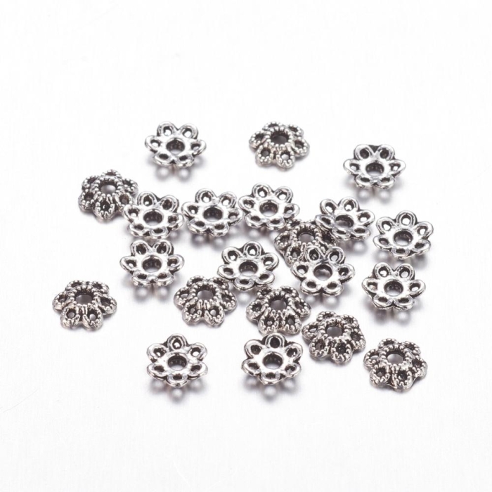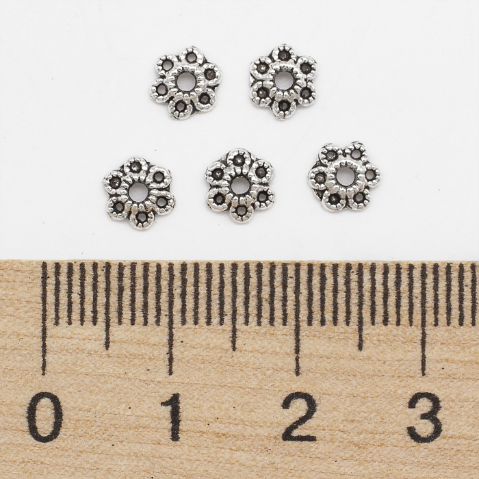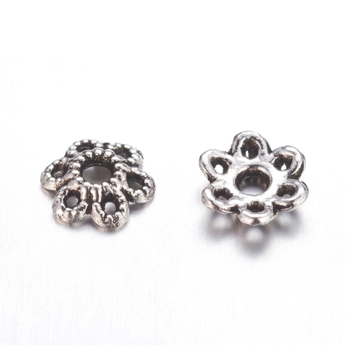 Шапочки для Бусин 6 лепестков, Цветок, Сплав, Тибетский Стиль, Античное Серебро, 6х1.5мм, Отверстие 2мм, (УТ0029208)
