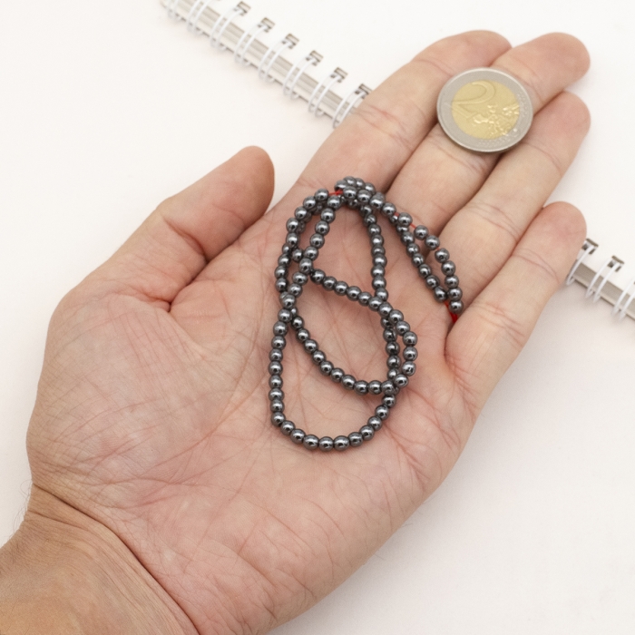 Бусины Гематит Немагнитный, На нитях, Круглые, Черный, 4мм, Отв. 1.2мм, около 100шт/40см/нить, (УТ0030779)Упаковка: