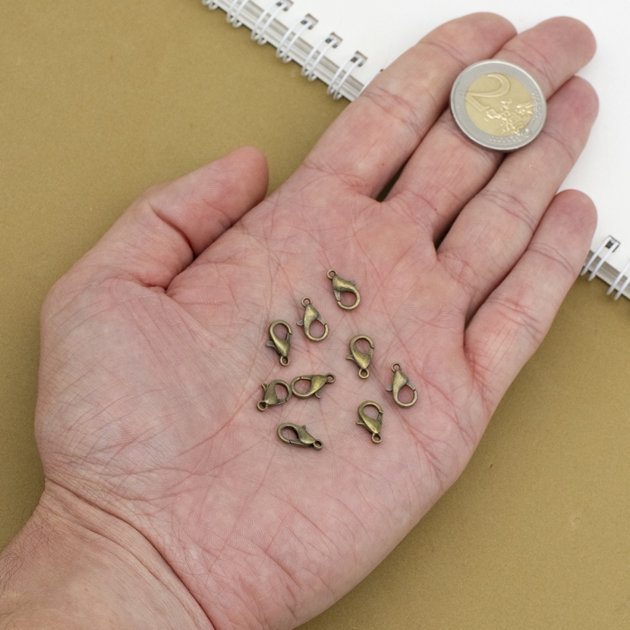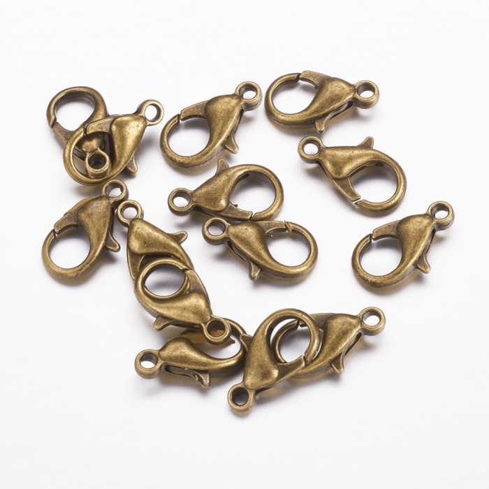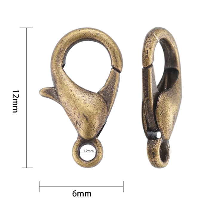 Застежка Карабин-Лобстер, Металл, Бронза, 12х6мм, Отверстие 1.5мм, (УТ100005179)