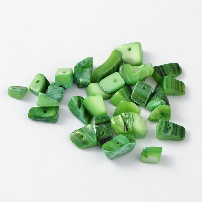 Бусины Речной Перламутр Крошка, Окрашенные, Зеленый, 8~17x5~7x4~6мм, Отверстие 1мм, около 64шт/50г, (УТ100006187)