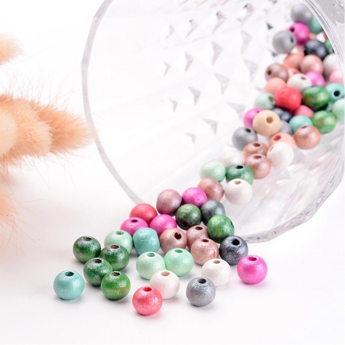 Бусины Деревянные Окрашенные, Круглые, Микс, 8мм, Отв-тие 3мм, около 140шт/25г, (УТ100005925)