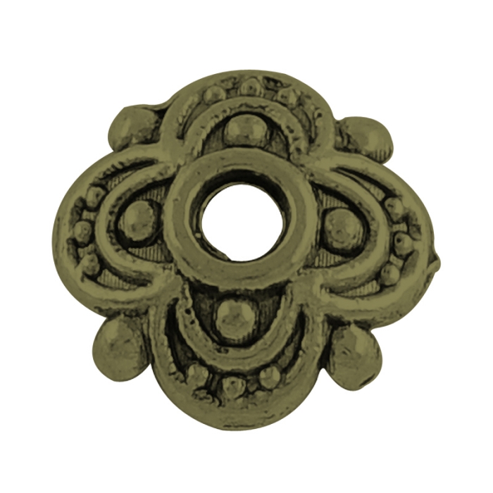 Шапочки для Бусин 4 лепестка, Цветок, Металл, Тибетский Стиль, Бронза, 8х8х2мм, Отверстие 2мм, (УТ100007544)