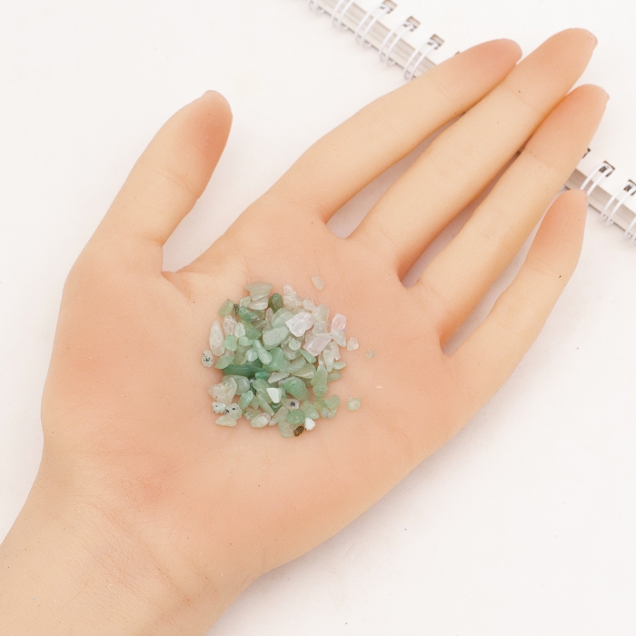 Крошка из натурального зеленого авантюрина без отверстий широко используется в декоративно-прикладном искусстве и изготовлении украшений. Она идеально подходит для инкрустации, создания кабошонов, мозаик, декора шкатулок, рамок и других интерьерных элементов. Этот материал особенно востребован мастерами, работающими над амулетами, талисманами и авторскими украшениями ручной работы, такими как подвески, колье и браслеты. Зеленый авантюрин гармонично сочетается с другими натуральными материалами, создавая уникальные и выразительные изделия.