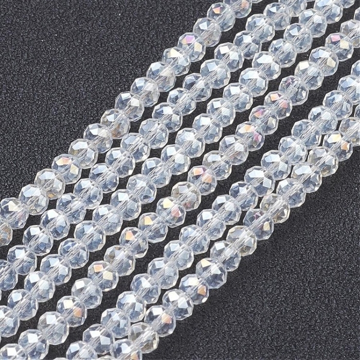 Бусины Гальваника Стекло АВ-Цвет, Граненые, Рондель, Цвет: Бесцветный, Размер: 3х2мм, Отв-тие: 1мм, около 100шт/25см/нить, (УТ100009261)