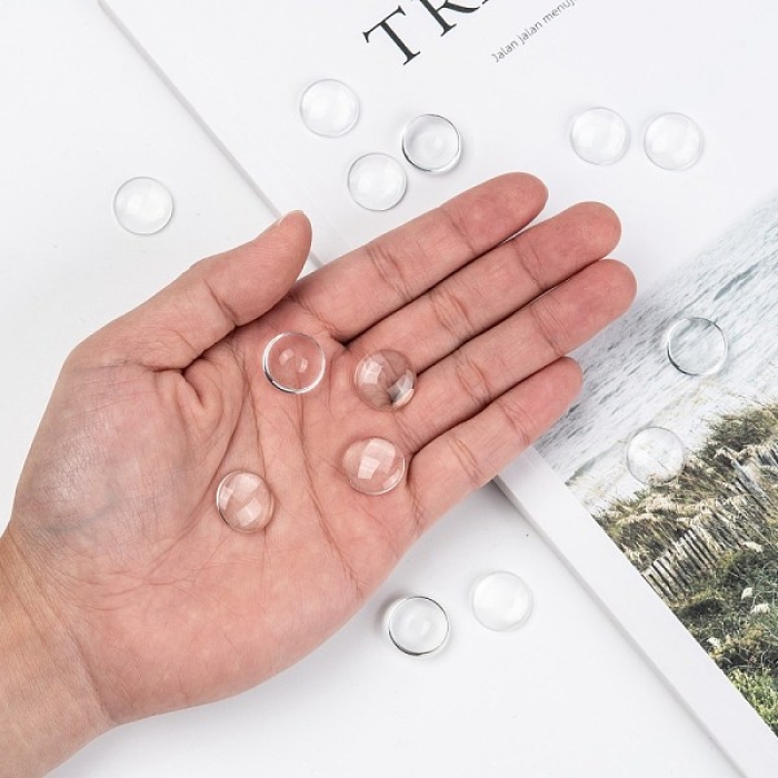 Кабошоны Стеклянные Круглые Прозрачные, Бесцветные, 16х5мм, (УТ100009411)