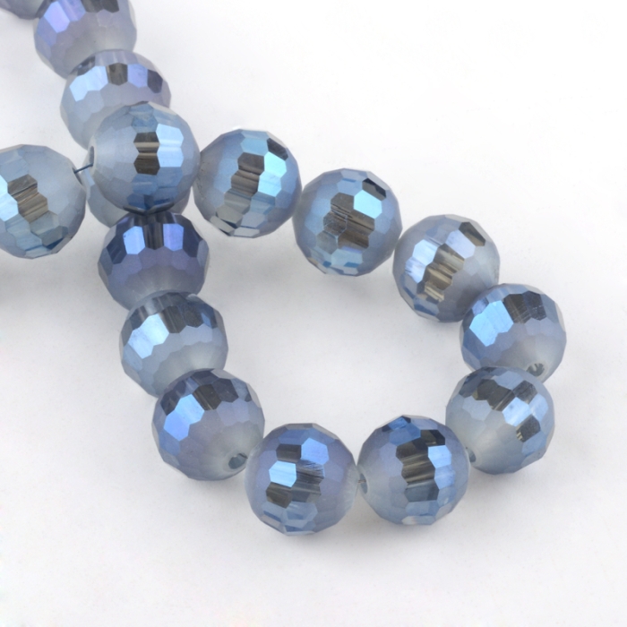 Бусины Стекло с Гальваникой, Граненые, радужные, морозный стиль, Круглые, Синий, Диаметр 9.5~10мм, Отв. 2мм, около 72шт/72см/нить (УТ100009318)