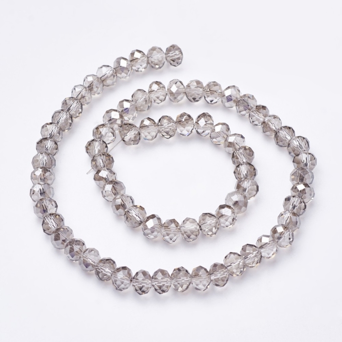 Бусины Гальваника Стекло АВ-Цвет, Граненые, Рондель, Цвет: Серый, Размер: 8х5мм, Отв-тие: 1мм, около 70шт/42см/нить, (УТ100009244)