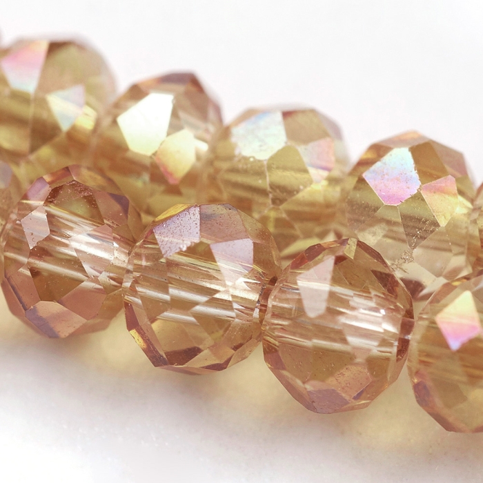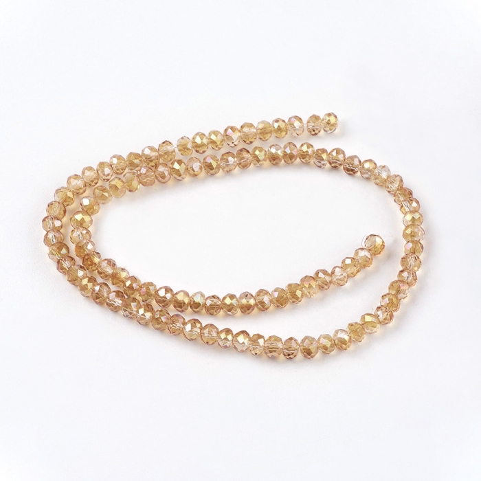 Бусины Стеклянные, с Гальваническим Покрытием АВ-Цвет, Граненые, Рондель, Размер: 3х2мм, Отверстие 1мм