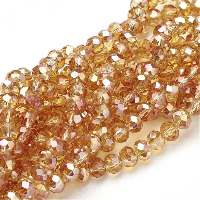 Бусины Гальваника Стекло АВ-Цвет, Граненые, Рондель, Цвет: Оранжевый, Размер: 3х2мм, Отв-тие: 1мм, около 100шт/25см/нить, (УТ100009264)
