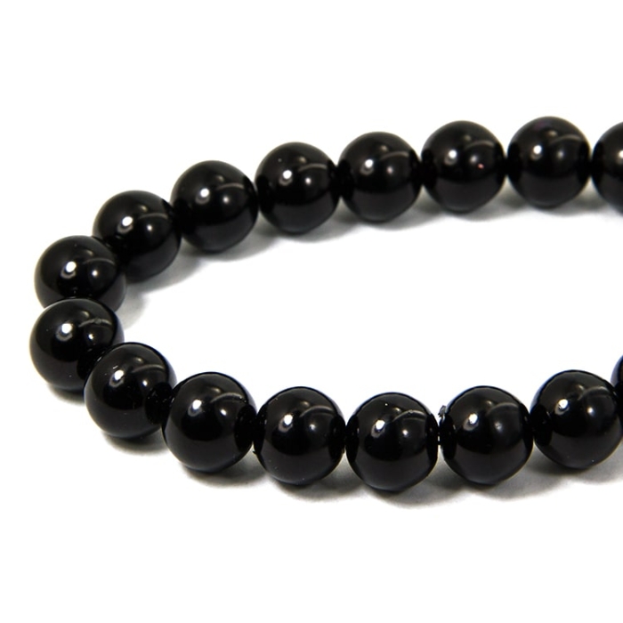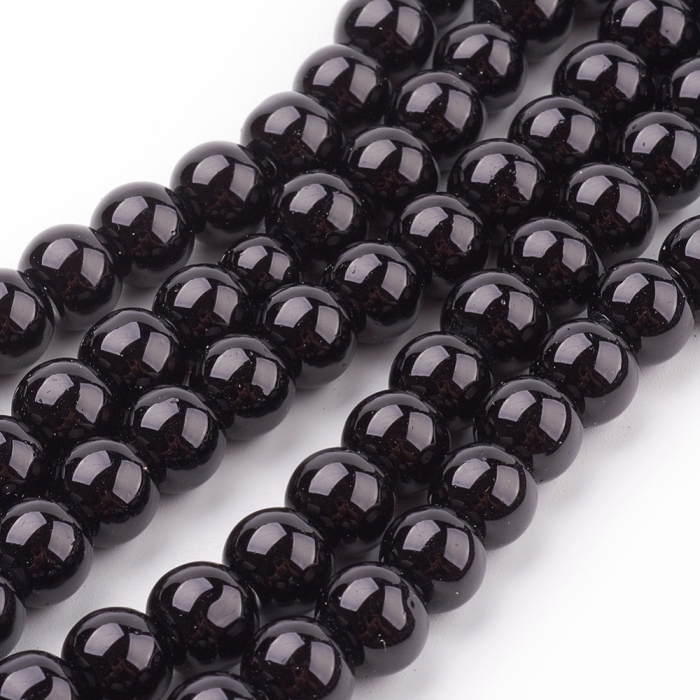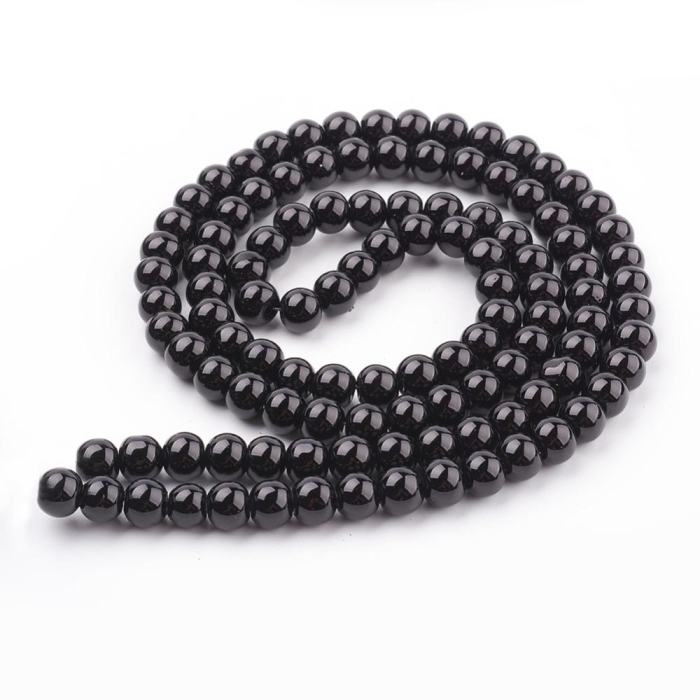Жемчуг Бусины Стекло 8мм, Глянцевые, Круглые, Цвет: Черный, Диаметр: 8мм, Отв-тие 1мм, около 90шт/72см/нить, (БА000000454)