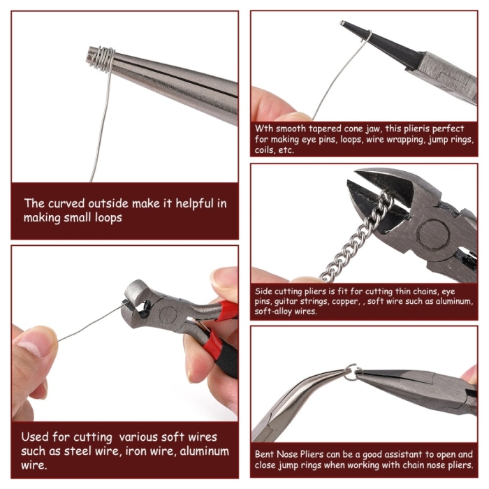 Набор инструментов для рукоделия и бижутерии из закалённой углеродистой стали включает широкий ассортимент инструментов: бокорезы, круглогубцы, кусачки торцевые, узкогубцы, плоскогубцы с изогнутым носиком, плоскогубцы-выпуклые, плоскогубцы и плоскогубцы с узким носиком. Эти инструменты обеспечивают полный функционал для работы с проволокой, фурнитурой, тросиками, пинами и другими мелкими элементами. Закалённая углеродистая сталь придаёт инструментам высокую прочность, долговечность и устойчивость к износу. Эргономичные ручки делают работу комфортной и удобной даже при длительном использовании.