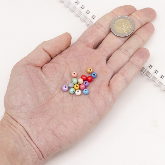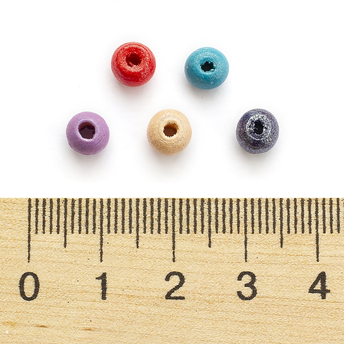 Бусины Деревянные Окрашенные, Круглые, Микс, 5-6мм, Отв-тие 2-3мм, около 360шт/25г, (УТ100012701)