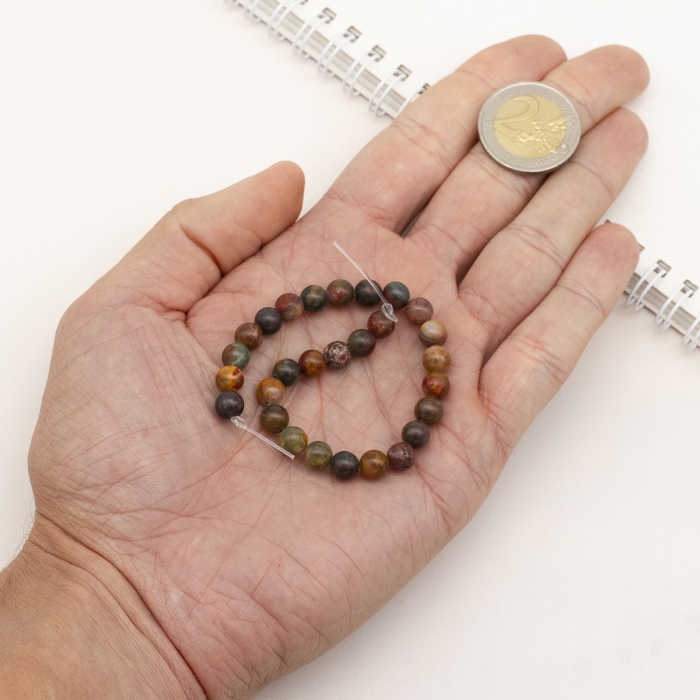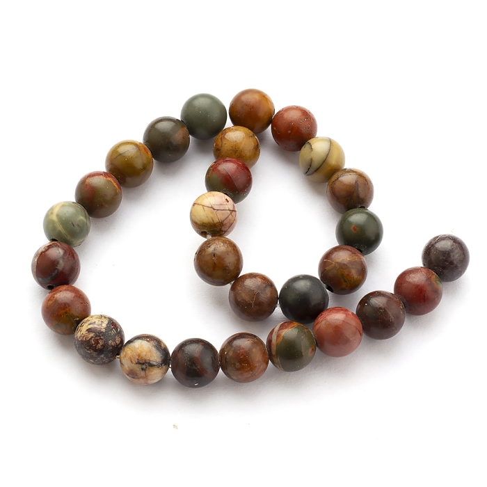 Бусины Натуральная Яшма Пикассо, На нитях, Круглые, 6мм, Отверстие до 1мм, около 29шт/17см/нить, (УТ100013899)