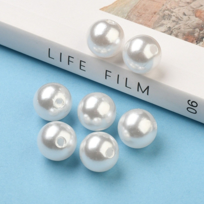 Жемчуг Бусины Акриловые Круглые Глянцевые, Белый, 10мм, Отверстие 2.5мм, около 50шт/25г, (УТ100014130)