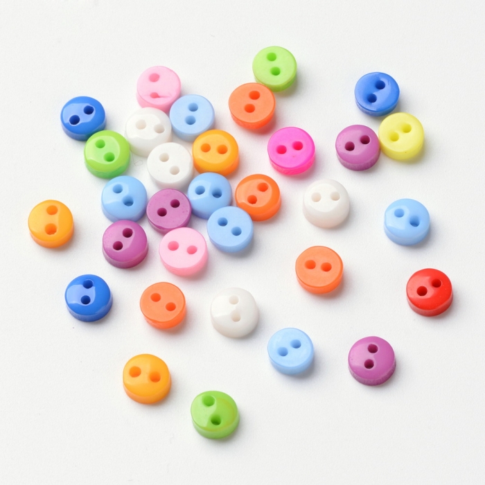 Пуговицы из Смолы, 2-отверстия, Круглая, Микс, 6мм, Отв-тие: 1мм, (УТ100012952)