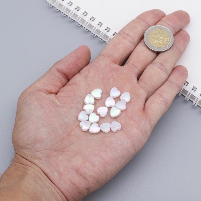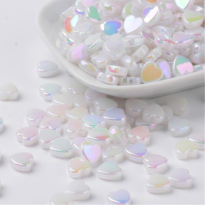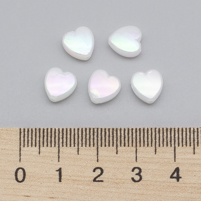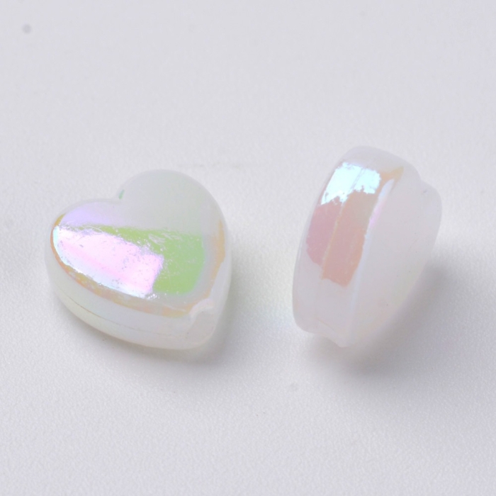 Бусины Акрил, Прозрачные, АВ цвет, Сердце, Белый, 8х8х3мм, Отверстие 1.5мм, около 130шт/25г, (УТ100014280)