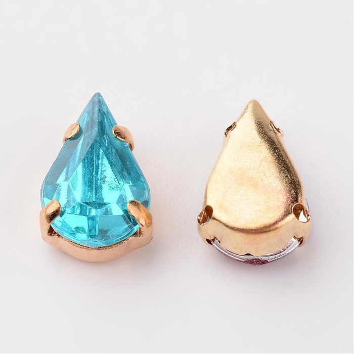 Пришивные Акриловые Стразы, Цапы Латунь, Капля, Цвет: Небесно-синий, Цап: Золото, Размер: 10х6х5мм, Отв-тие 1мм, (УТ100014563)