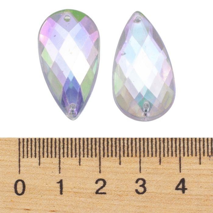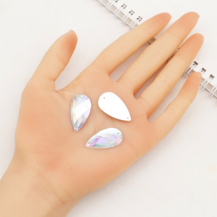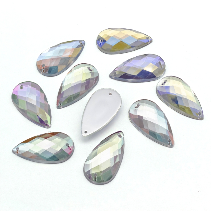 Пришивные Акриловые Стразы АВ-цвет на 2 Отверстия Капля