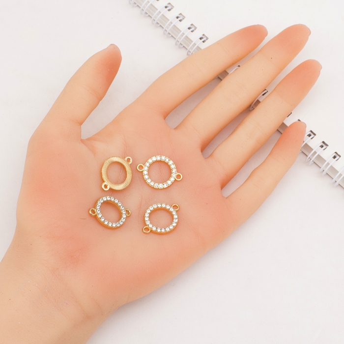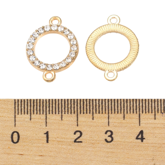 Элегантный круглый коннектор, украшенный сияющими стразами, станет ярким акцентом в ваших украшениях. Выполнен из прочного цинкового сплава, устойчивого к износу, с изысканным блеском и надежной фурнитурой.