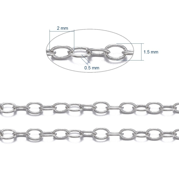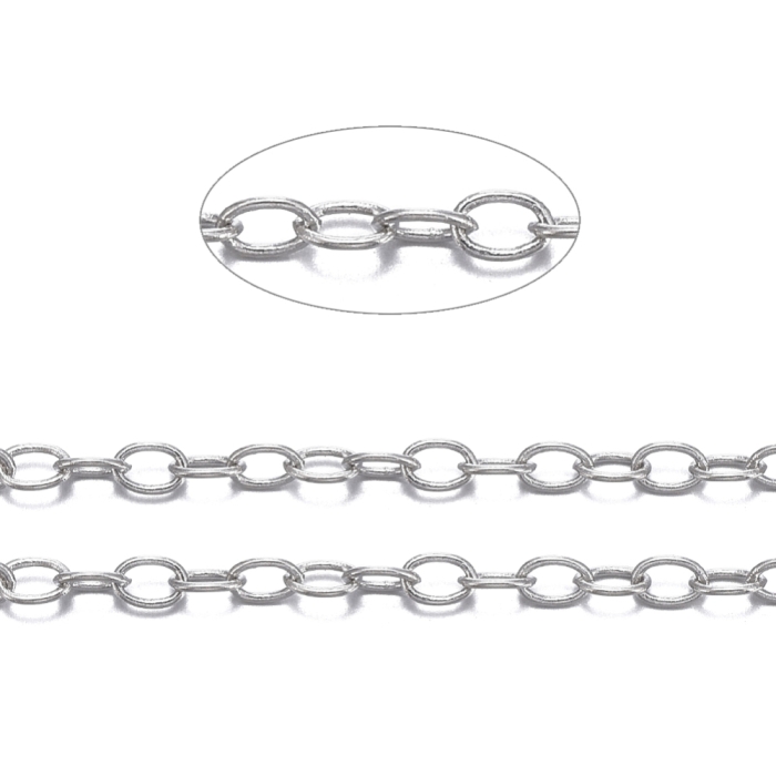 Цепь Якорное Плетение, Латунь, Стойкое Покрытие, Цвет: Платина, Звено: 2x1.5х0.5мм, (УТ100017591)