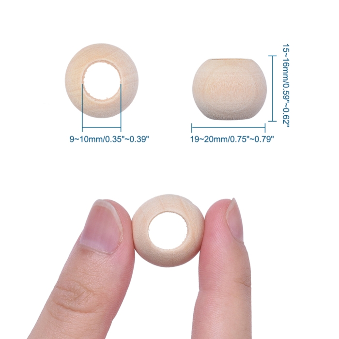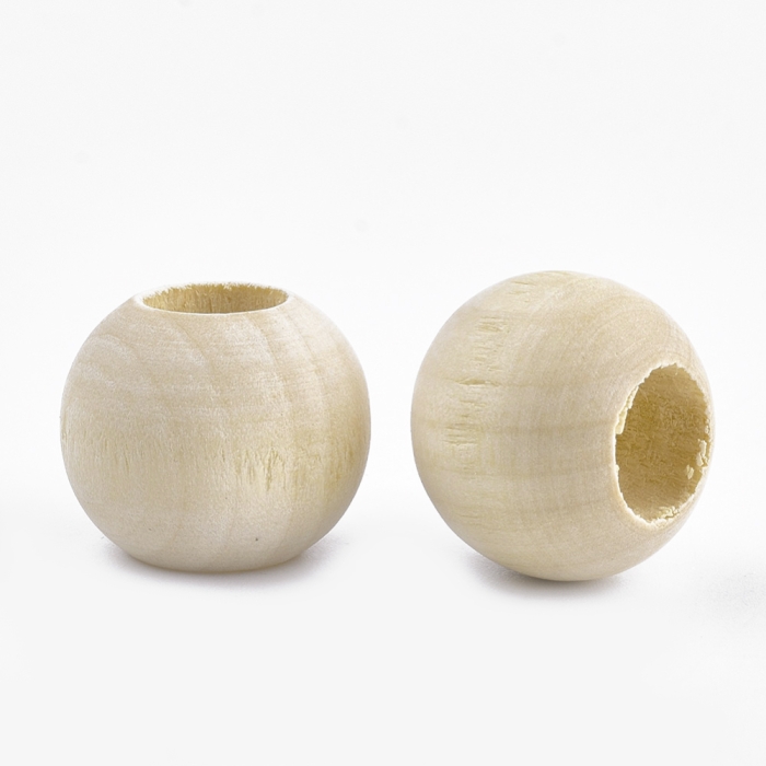 Бусины Деревянные Неокрашенные Круглые, 19-20x18-18.5мм, Отверстие 9-9.5мм, (УТ100018222)