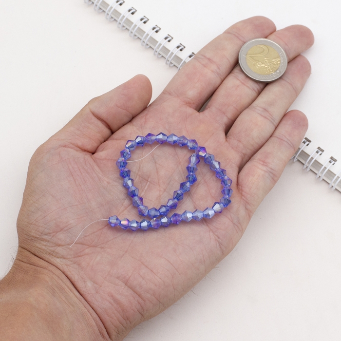Бусины Австрийский Хрусталь Класс АА, Имитация, Биконус, Гальваника Радужные, Бесцветный Бензин, 6х6мм, Отв. 1мм, ок. 45шт/25см/нить (УТ0031052)
