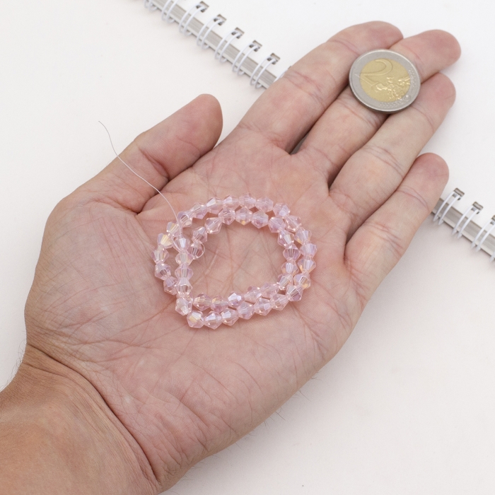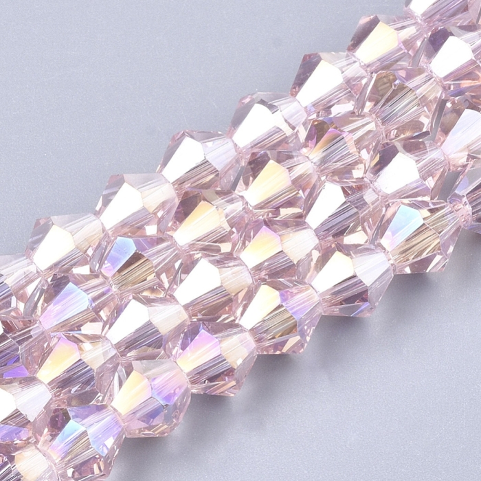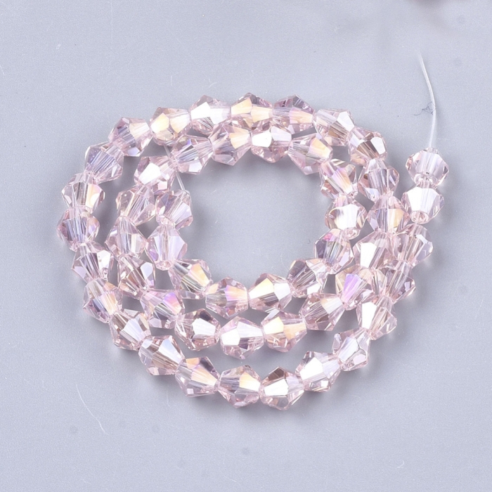 Бусины Австрийский Хрусталь Класс АА, Имитация, Биконус, Гальваника Радужные, Бесцветный Бензин, 6х6мм, Отв. 1мм, ок. 45шт/25см/нить (УТ0031052)