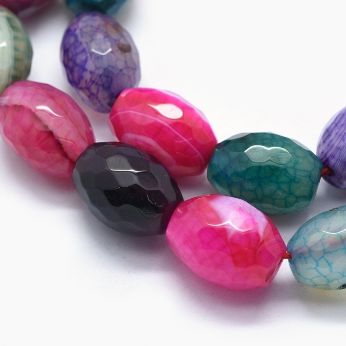 Бусины Натуральный Агат Вены Дракона, Овал, Граненые, Окрашенные, На нитях, Микс, 18x13мм, Отв. 1,6мм, Ок. 22шт./40см/нить (УТ100019500)