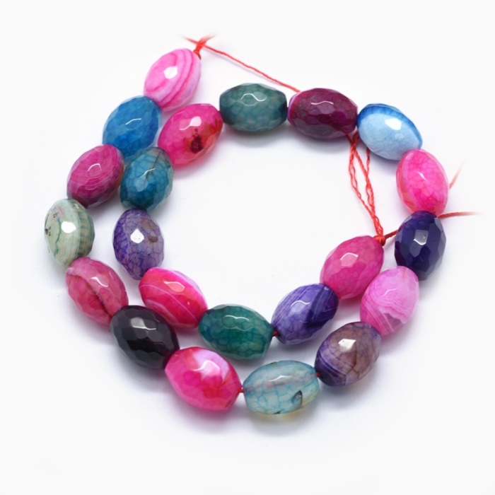 Бусины Натуральный Агат Вены Дракона, Овал, Граненые, Окрашенные, На нитях, Микс, 18x13мм, Отв. 1,6мм, Ок. 22шт./40см/нить (УТ100019500) - ᐈ заказывайте в Москве оптом и в розницу ✅Скидки ✅Акции ✅Распродажи ᐈ доставка по всей России ᐈ Интернет-магазин Мир Бусин