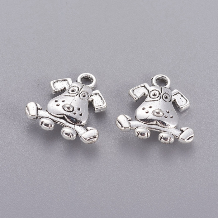 Кулон Собака, из Сплава, Тибетский Стиль, Цвет: Античное Серебро, Размер: 16х15х3.5мм, Отверстие 2мм, (УТ100020695)