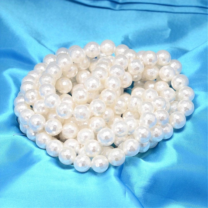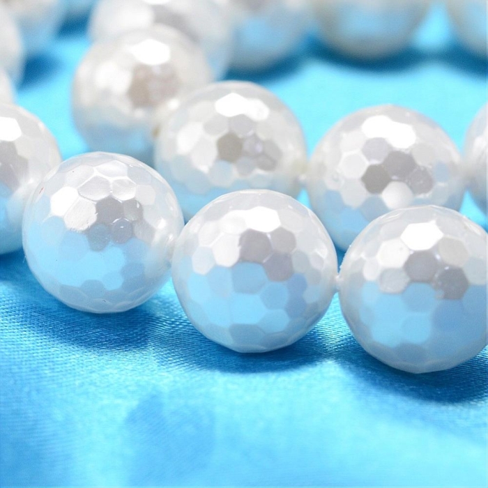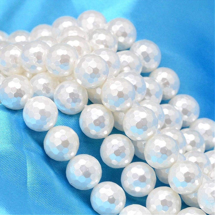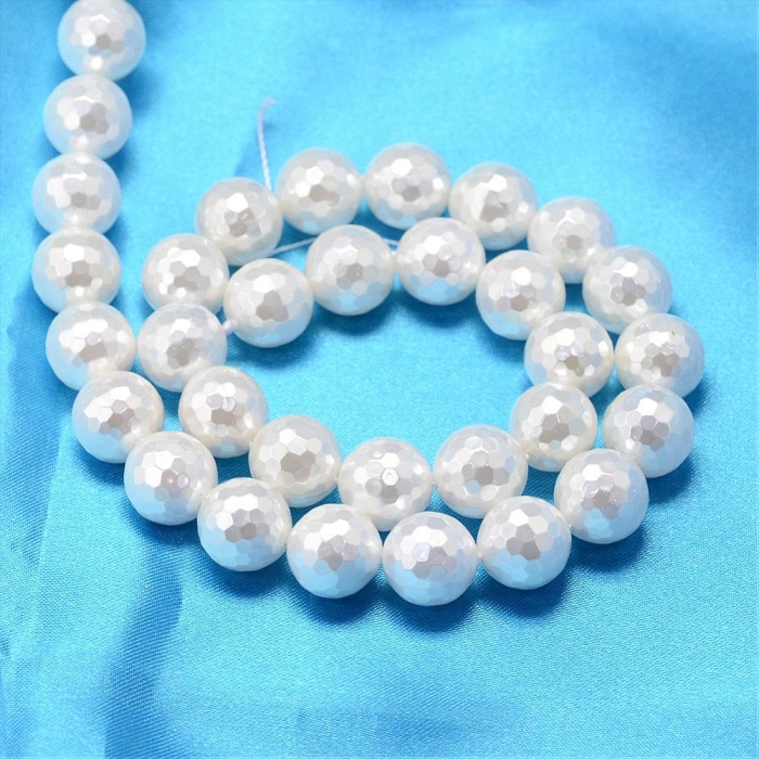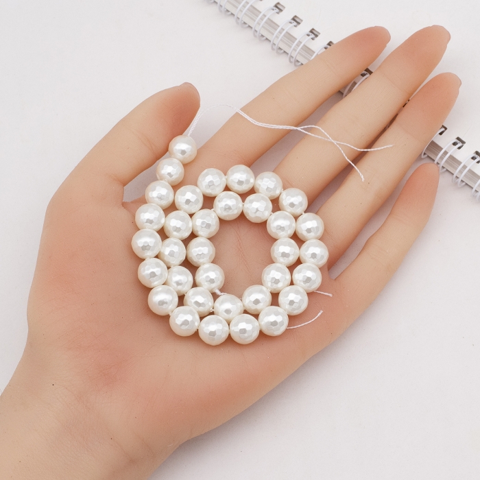 Жемчуг Shell Pearl Бусины Круглый, Граненый, Белый, 10мм, Отверстие 0.8-1мм, около 41шт/40см/нить, (УТ100020810)