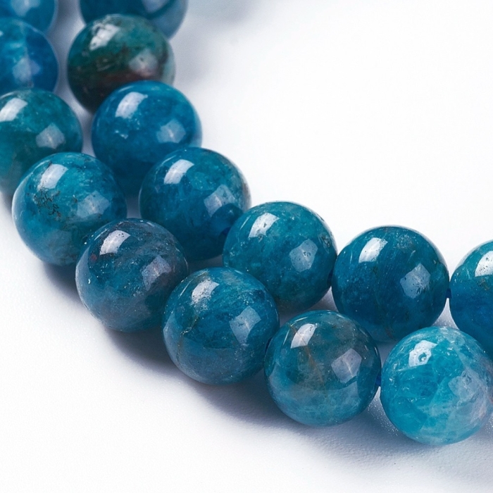 Бусины из натурального апатита — это стильные и насыщенные элементы, которые привносят в украшения глубокие оттенки синего, зеленого и бирюзового цветов. Апатит известен своими природными переливами и чистотой оттенка, которые придают бусинам уникальную привлекательность и особую глубину. Этот камень часто имеет легкие внутренние включения, что делает каждую бусину по-своему уникальной и подчеркивает её природное происхождение.