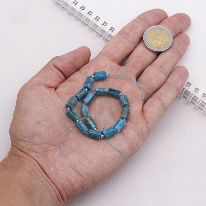 Бусины Натуральный Апатит, Граненый, Колонка, Цвет: Синий, Размер: 8~11x6~8x5~7мм, Отверстие: 1мм, около 15шт/17см/нить (УТ100022734) - ᐈ заказывайте в Москве оптом и в розницу ✅Скидки ✅Акции ✅Распродажи ᐈ доставка по всей России ᐈ Интернет-магазин Мир Бусин