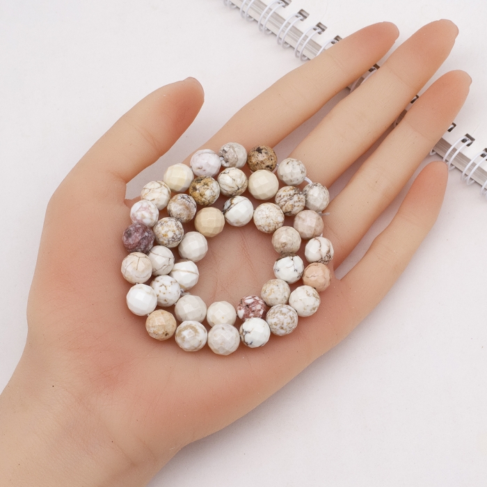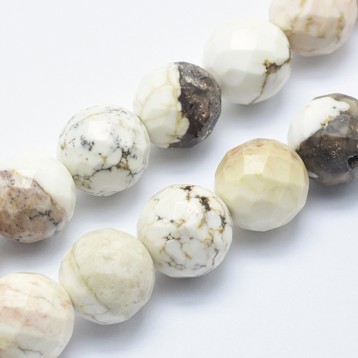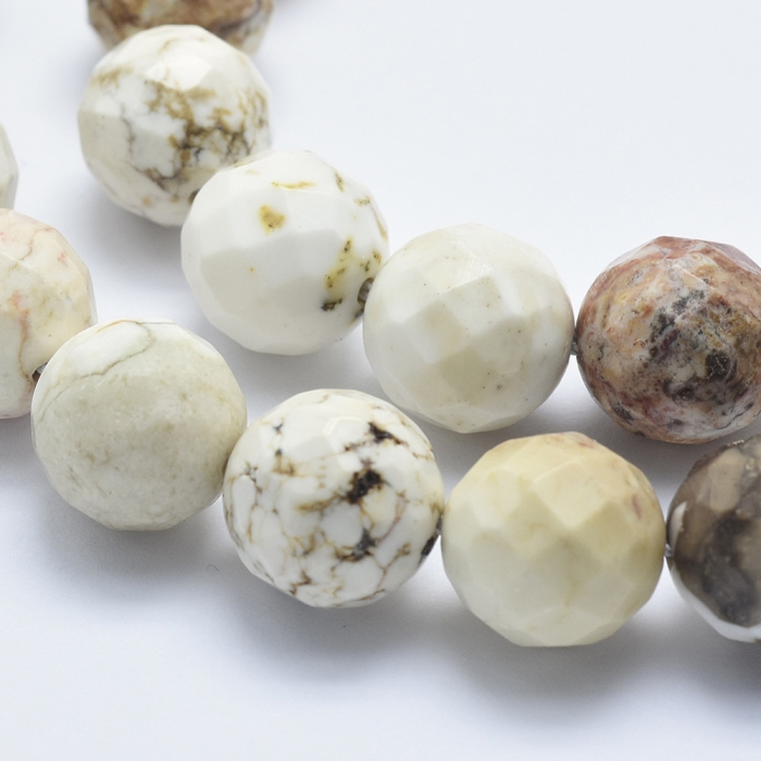 Бусины Натуральный Говлит Круглые, Граненые, Бежевые, 10мм, Отверстие 1мм, около 38шт/40см/нить, (УТ100022800)