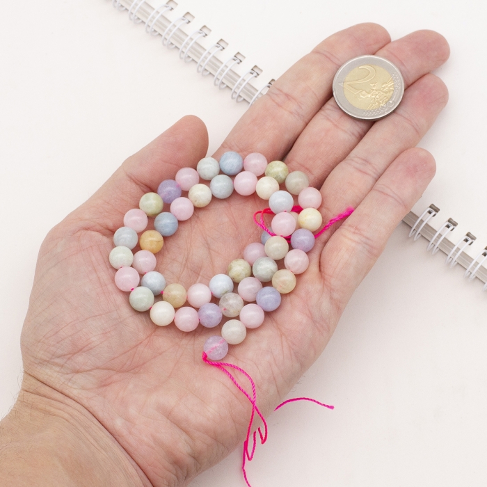 Бусины Натуральный Морганит, на нитях, Круглые, Класс А, Цвет: Микс, Размер: 8~9мм, Отверстие 1мм, около 45~48шт/40см/нить, (УТ100022840) - ᐈ заказывайте в Москве оптом и в розницу ✅Скидки ✅Акции ✅Распродажи ᐈ доставка по всей России ᐈ Интернет-магазин Мир Бусин