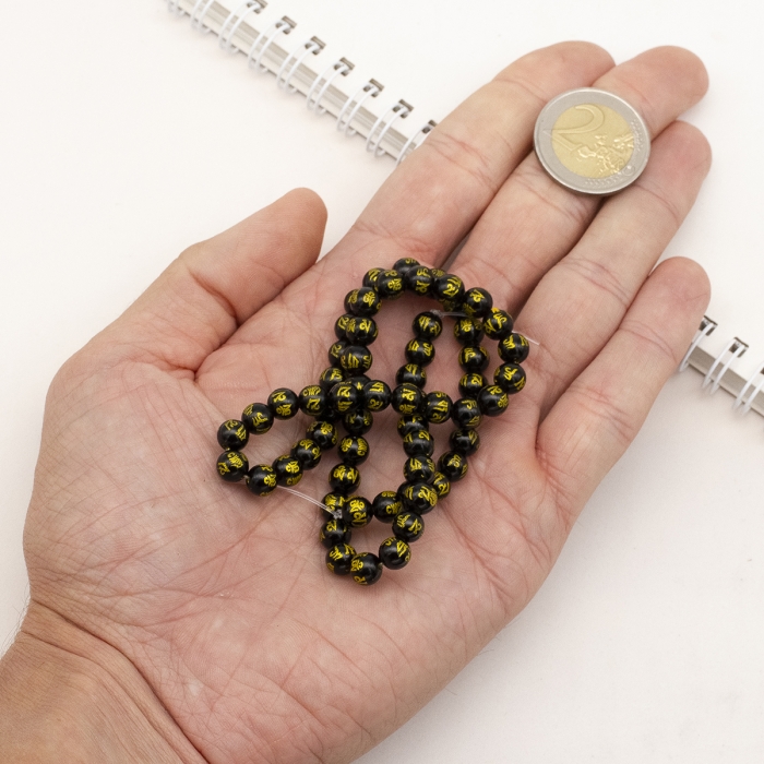 Бусины Натуральный Обсидиан, На нитях, Круглые, с Гравировкой Ом Мани Падме Хум, Цвет: Черный, Размер: 6.5мм, Отверстие 1мм, около 60шт/38см/нить, (УТ100022973) - ᐈ заказывайте в Москве оптом и в розницу ✅Скидки ✅Акции ✅Распродажи ᐈ доставка по всей России ᐈ Интернет-магазин Мир Бусин
