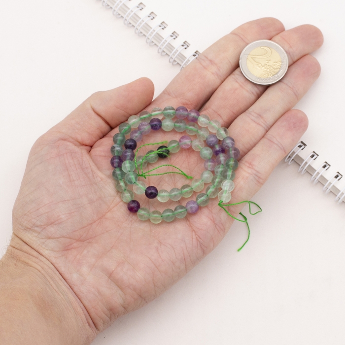 Бусины Натуральный Флюорит, на нитях, Круглые, Цвет: Микс, Размер: 6мм, Отверстие 1мм, около 59шт/38см/нить, (УТ100023007) - ᐈ заказывайте в Москве оптом и в розницу ✅Скидки ✅Акции ✅Распродажи ᐈ доставка по всей России ᐈ Интернет-магазин Мир Бусин