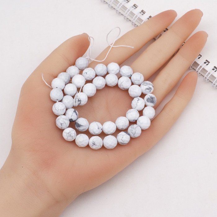 Бусины Натуральный Говлит Круглые, Граненые, Белый, 10мм, Отверстие 1мм, около 37шт/40см/нить, (УТ100023094)