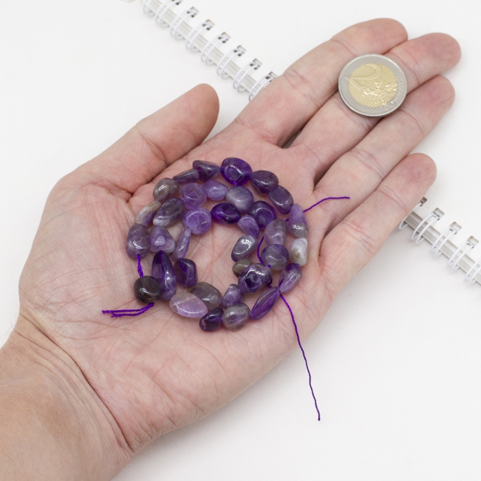 Бусины Натуральный Аметист, Неокрашенные, На нитях, Форма Обработанные Самородки.